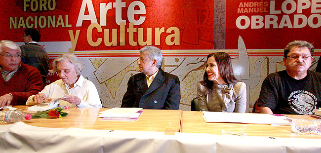 Me da gusto estar aquí de nuevo en Michoacán, en Morelia, con ustedes, agradezco la participación de quienes expusieron sobre el tema de la cultura, del arte, a todos los expositores. Quiero llamar la atención de que nos acompañada mi maestro Arnaldo Córdova que está también con nosotros, destacados intelectuales, artistas, promotores culturales, amigas, amigos todos.